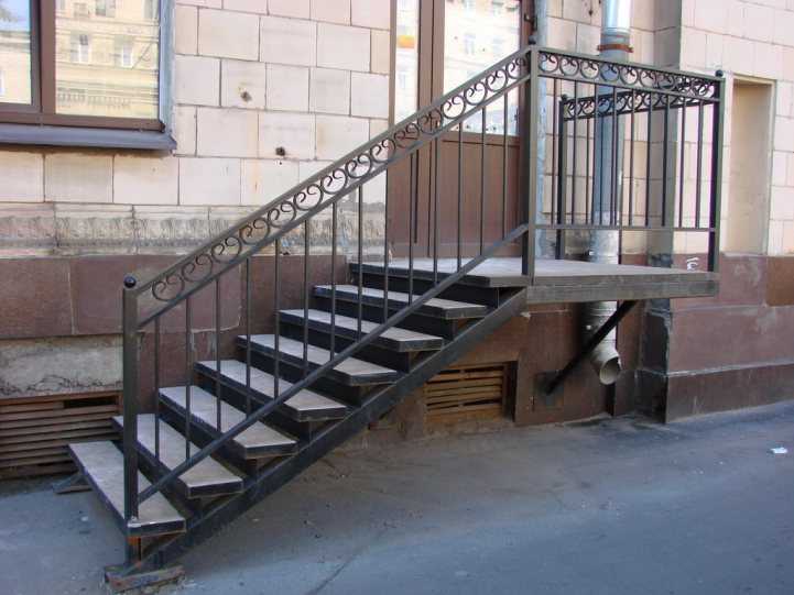 Если применяется металл, то ступеньки просто приваривается к опорным балкам. Однако стоит учитывать, что размещать ступеньки нужно под небольшим углом, чтобы с них стекала влага.