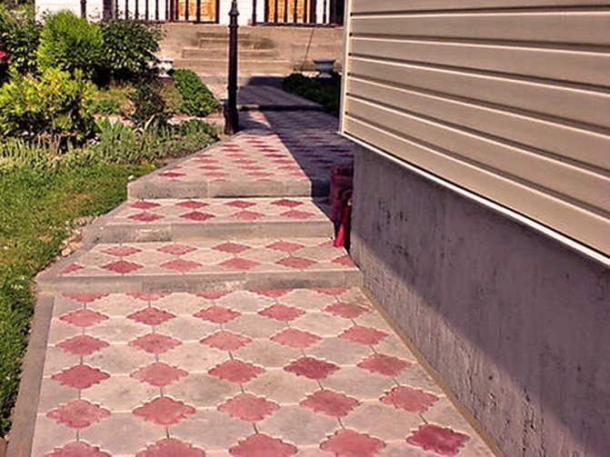 Плитка украсит бетонную отмостку и защитит ее от механического износа и влаги.