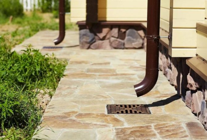 Делать отмостку обычно начинают после сооружения ливневой канализации. Накопительные колодцы внутри отмостки устанавливают, соединяя с трубой, отводящей воду от основания дома.