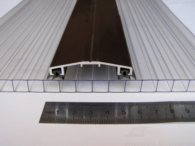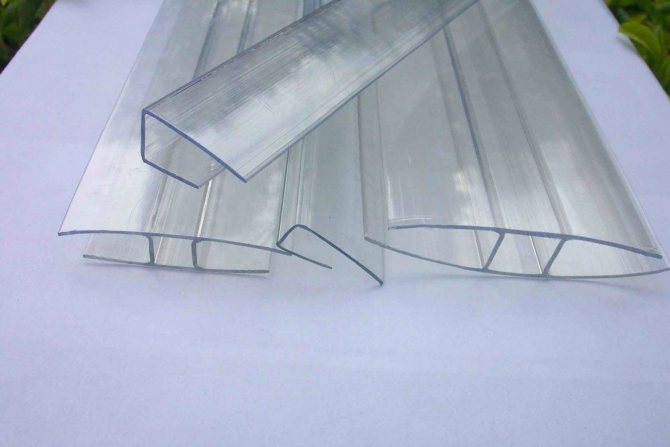 Стыковочный профиль выполняется обычно из прозрачного материала — поликарбоната, что позволяет применять его как для прозрачных, так и для полупрозрачных конструкций, которые изнутри должны быть хорошо освещены. Этот элемент позволяет крыше или стене максимально сохранить способность пропускать свет. Также он может быть сделан и из алюминия.