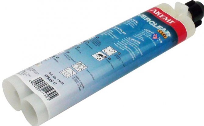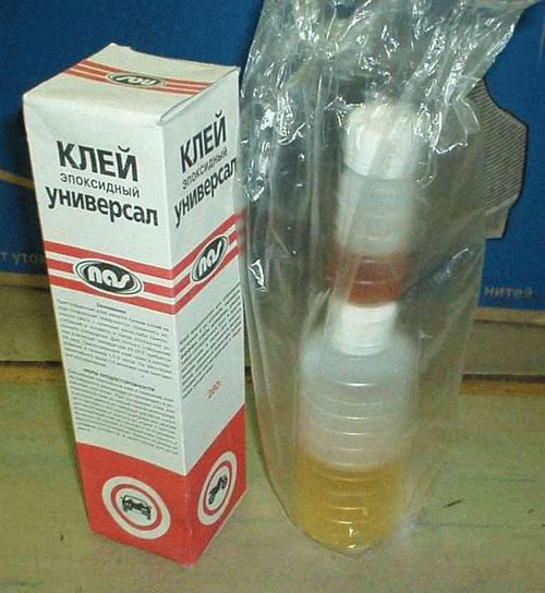 Это двухкомпонентный адгезив, который имеет прозрачную консистенцию.