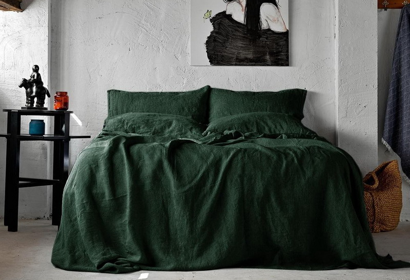 Оцените, как гармонично и стильно смотрятся различные льняные комплекты на кровати, идеально дополняя атмосферу спальни. Великолепный насыщенный зеленый цвет прекрасно вписывается в лофт, экостиль и скандинавский дизайн.
