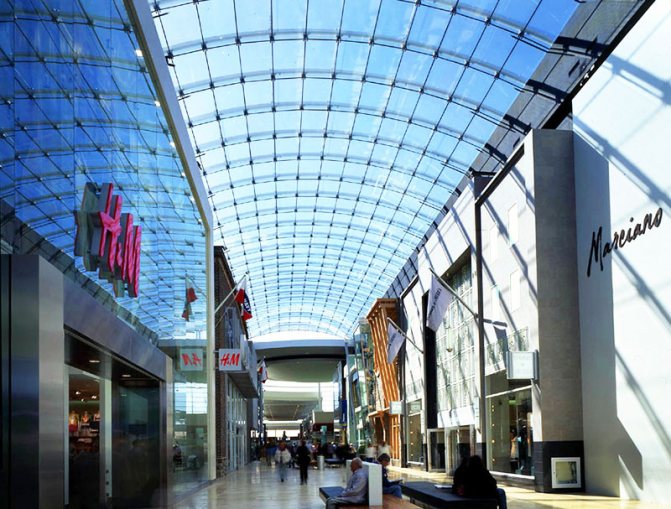 ФОТО: sc01.alicdn.comТорговые комплексы предпочитают такие варианты кровли, потому что они дают ощущение простора и позволяют значительно сэкономить электроэнергию