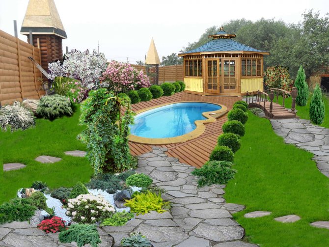 Но если это удается, то «овчинка выделки стоит». Участок получается оригинальным, необычным, в большей степени напоминающим естественную природу, располагающим к спокойствию и приятному отдыху.