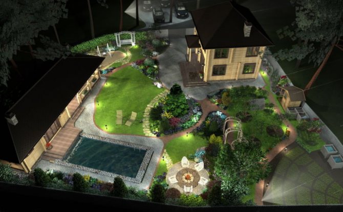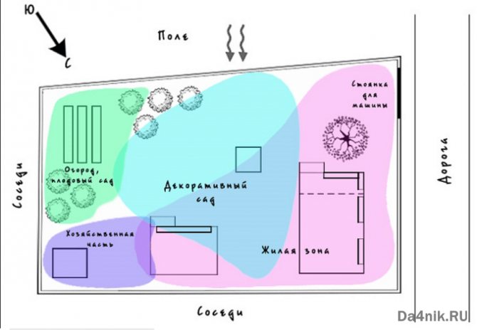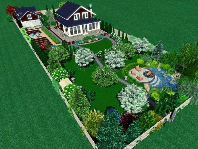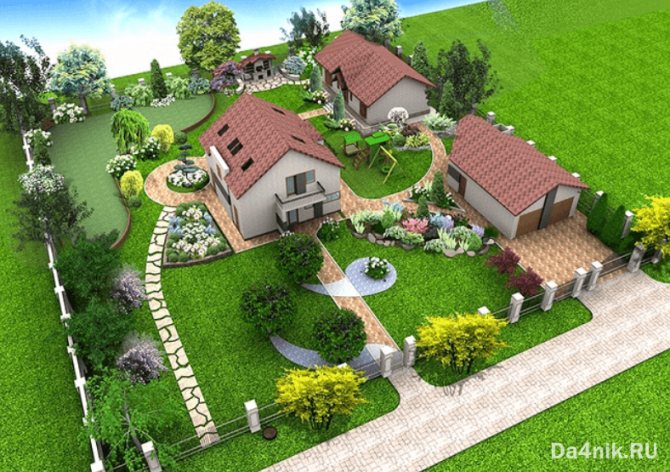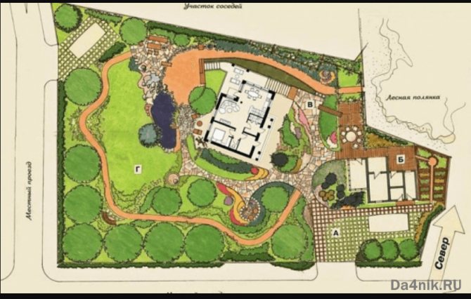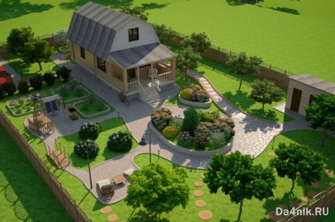 ↑ Размещение дома при создании ландшафта небольшого участка