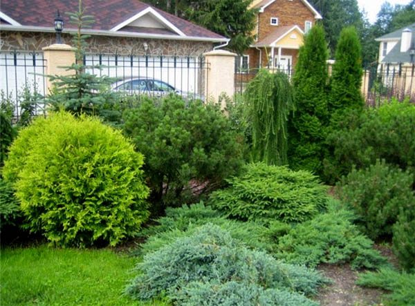 Вообще, сад можно создать из одних туй и можжевельников. И выйдет потрясающе красиво, если поиграть с цветом и с формой. Использовать, например, желтоокрашенную Aurea с белокончиковой Albospikata. Оба сорта, а также многие другие без труда можно приобрести в питомниках (или совсем маленькими саженцами или подростками 3-5 лет).