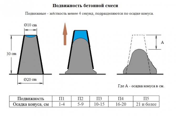 Ориентироваться следует на структуру материала. Бетон должен характеризоваться умеренной текучестью. Для заливки опалубки используют более жидкий раствор.