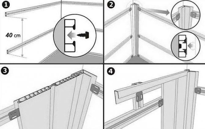 - стартовый профиль закрепляется в левом углу, с которого начинается сборка;