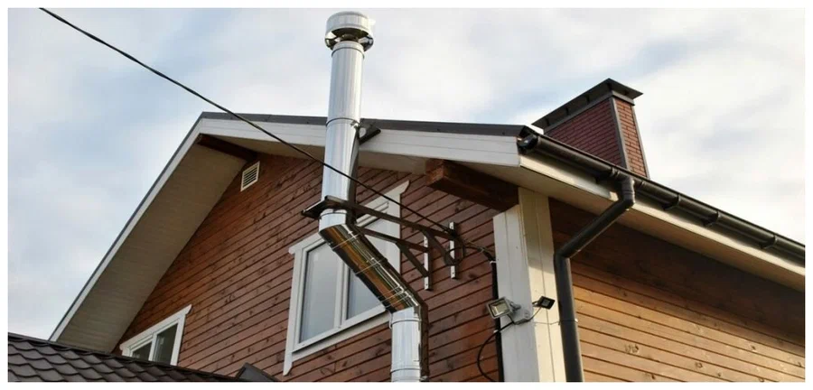 Обязательно при монтаже необходимо соблюдать расстояния между дымоходом и стенами, кровлей или соседними конструкциями. Обычно нормативами прописано минимальное расстояние — не менее 25 сантиметров, но оно может варьироваться в зависимости от материала стен и типа дымохода.