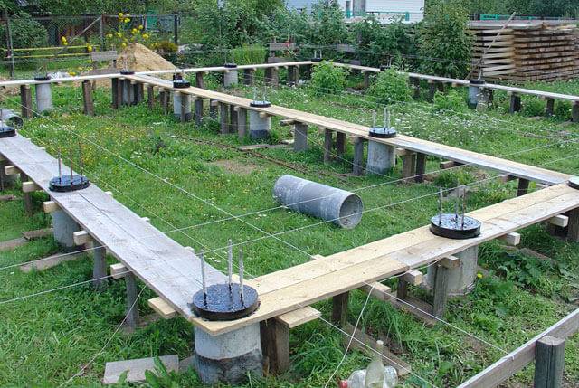 Ее размерфы близки к параметрам мелкозаглубленного ленточного основания, поэтому вся методика изготовления бетонного ростверка максимально приближена к технологии отливки ленты.