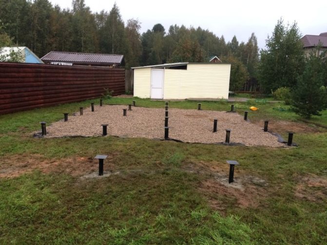 Кроме того, фундамент на сваях для бани можно сделать из готового набора опорных элементов, они есть в продаже в строительных магазинах.