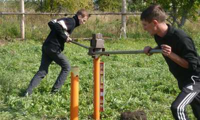 Для вкручивания свай ручным методом используются длинные металлические ломы, которые выполняют функцию рычагов. Такую работу следует выполнять вдвоем или втроем. Если имеется возможность заезда спецтехники на участок, можно осуществить установку механическим способом. Это даст возможность сэкономить время и силы.