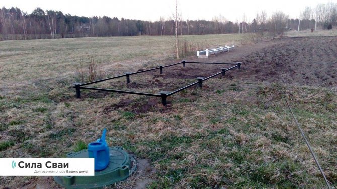 В результате получается мощный и прочный бетонный пояс, расположенный под всеми несущими стенами и соединяющий буронабивные сваи в единую опорную систему.