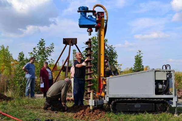 По результатам разметки выполняется бурение скважин. Глубина определена в проекте, требуется только создание углублений в грунте.