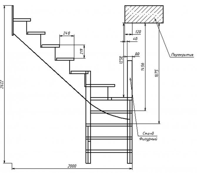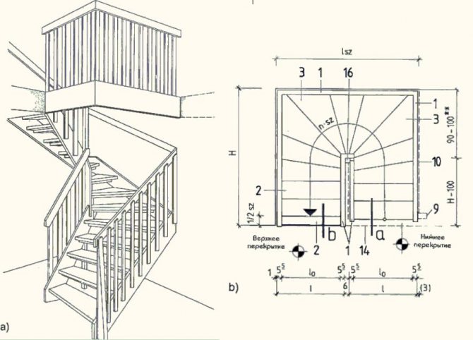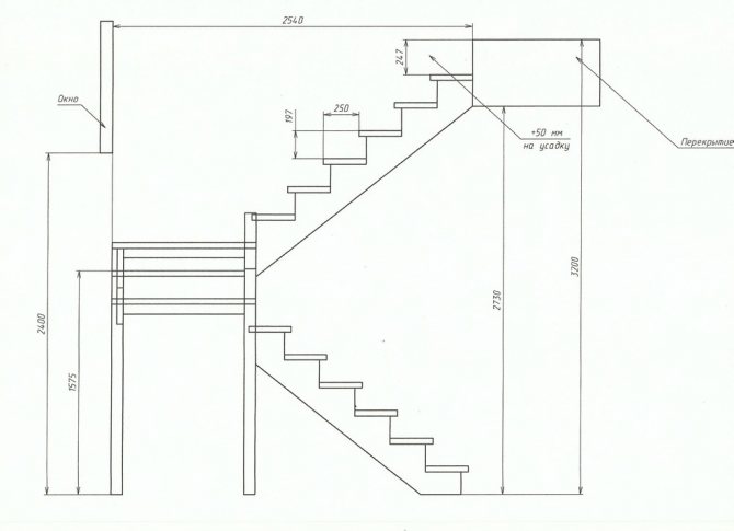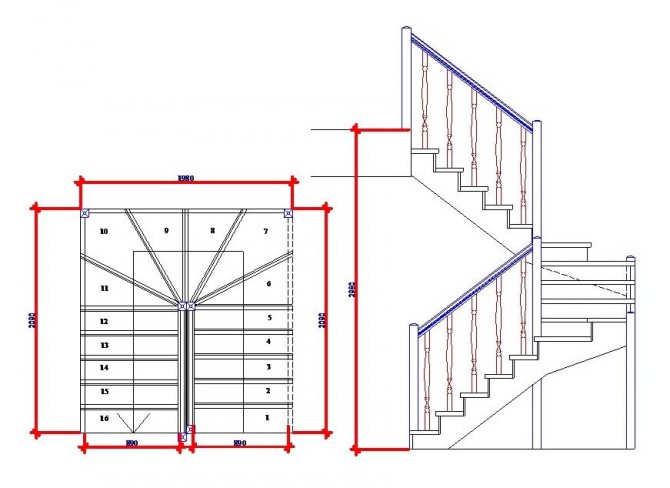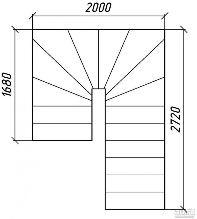Расчет лестниц с поворотом на 90°