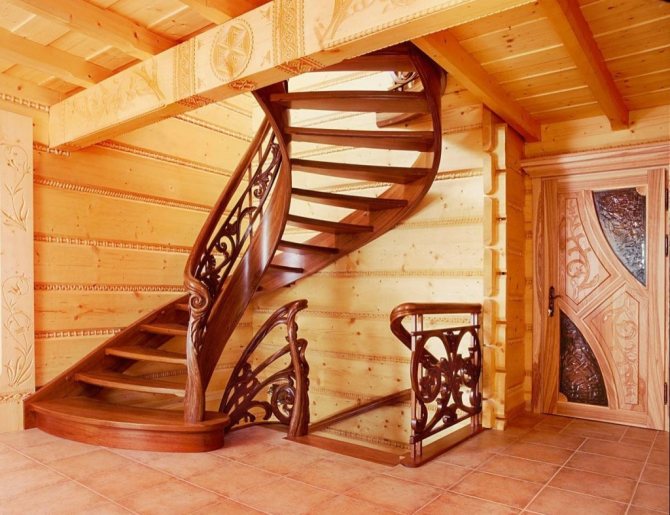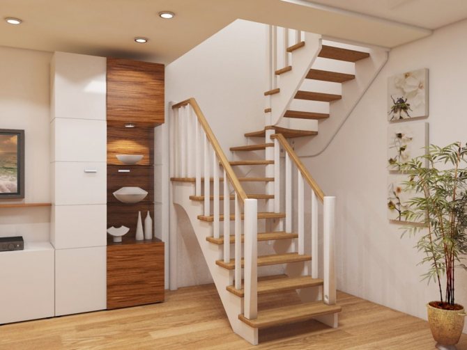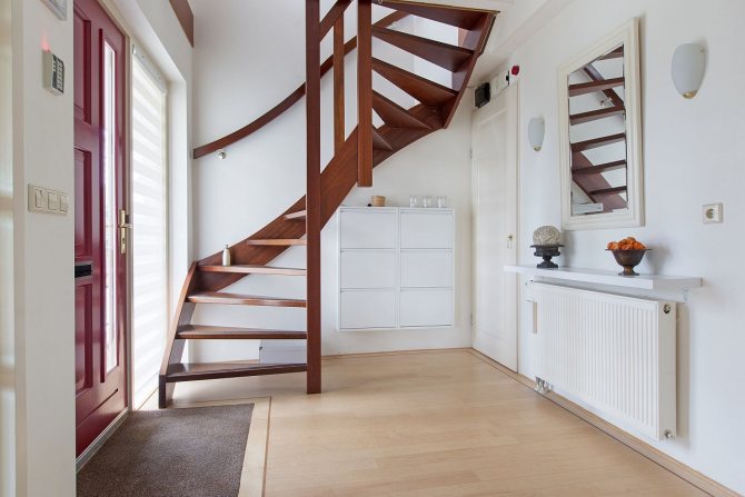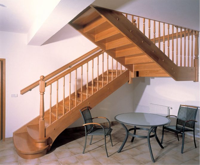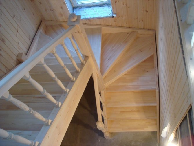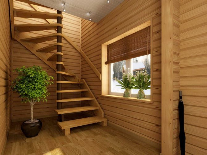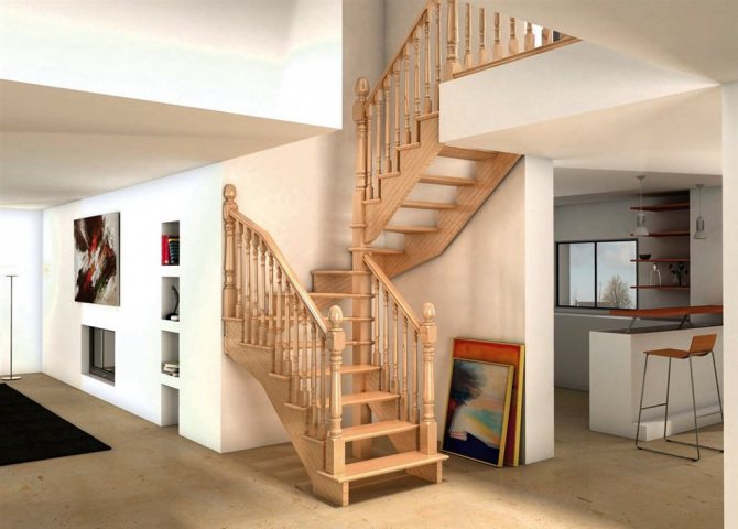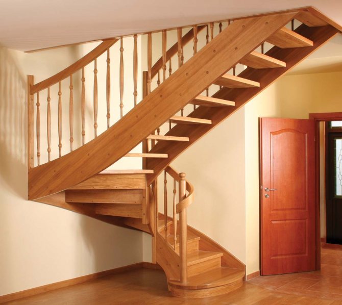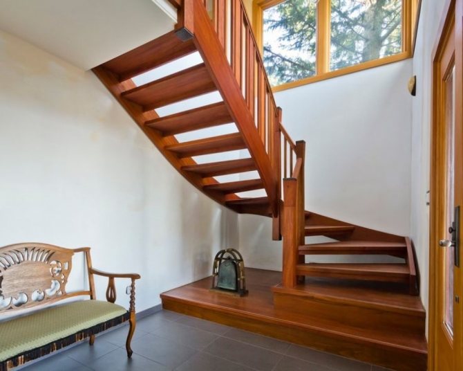 Деревянная лестница с поворотными ступенями позволяет значительно съэкономить пространство в доме без потери удобства и функциональности