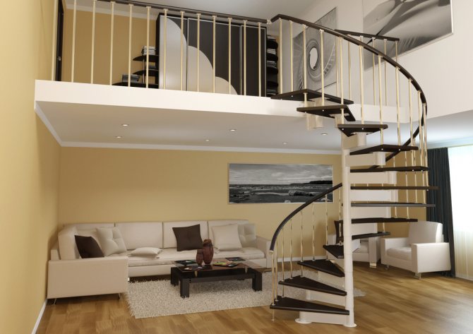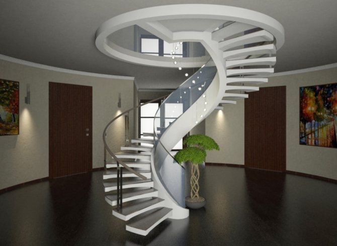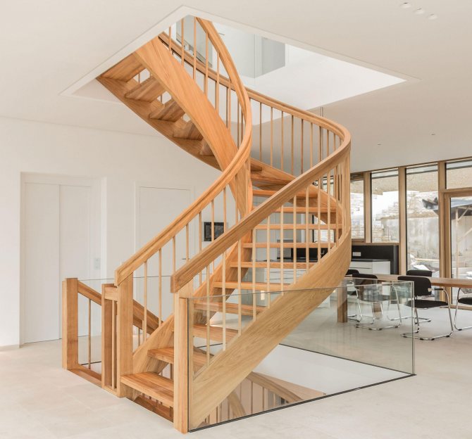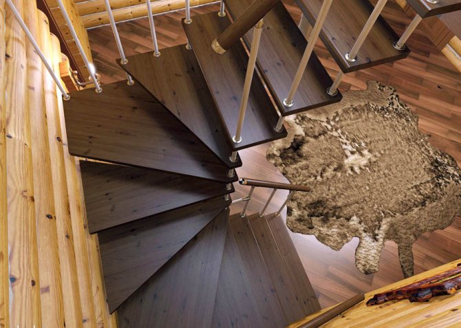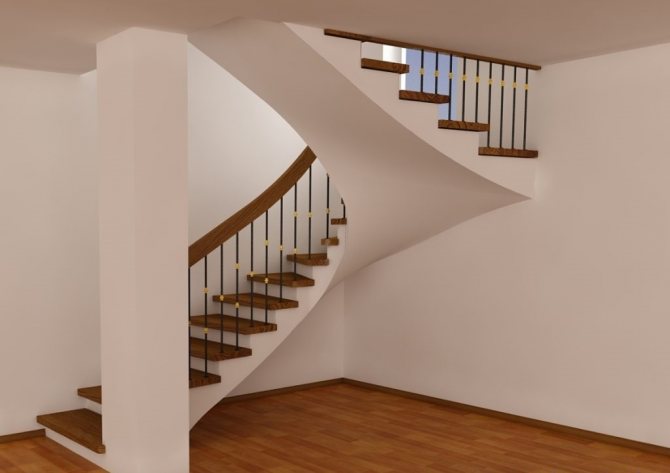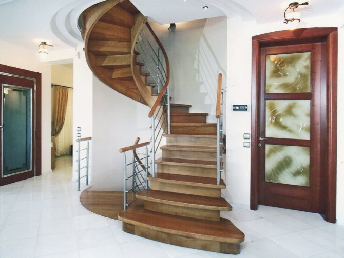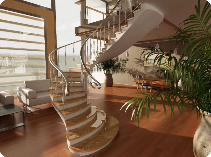 - Винтового типа. Такие лестницы имеют поворот вокруг своей оси. Их используют, если в доме не хватает свободного пространства для маршевой конструкции. Но, существуют трудности в их расчёте и монтаже.