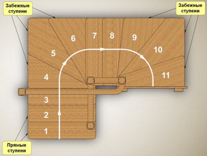 Ширина маршевой лестницы с забежными ступенями