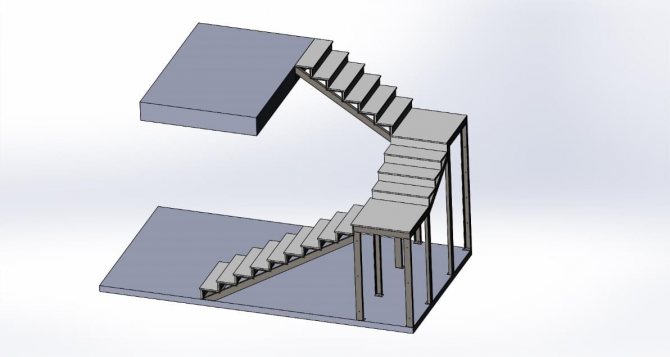 - установка двойного или тройного марша с площадкой прямоугольной формы;