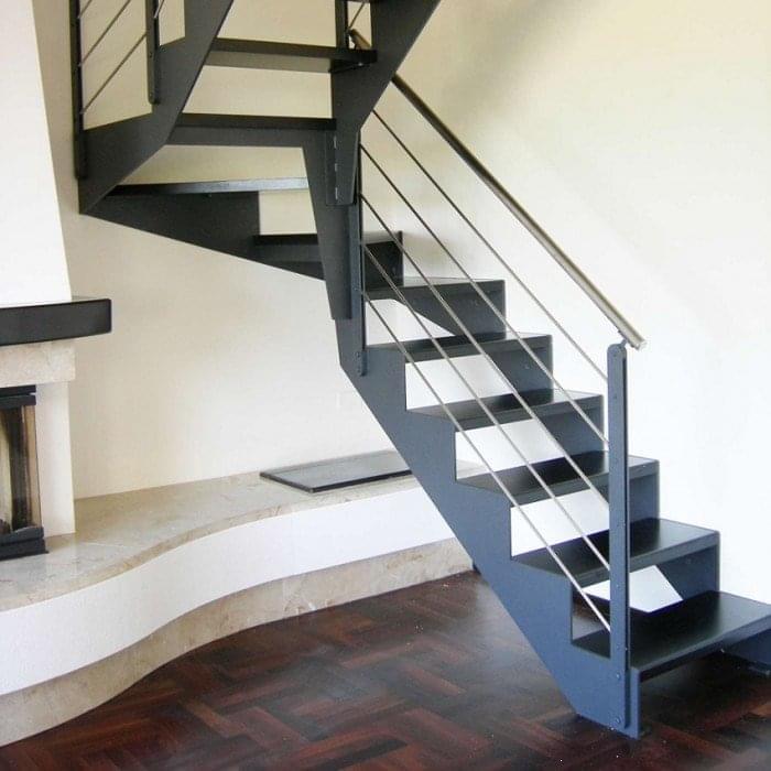 - Маршевого типа. В конструкцию входят отдельные марши. По их количеству лестницы подразделяются на одно-, двух- и более маршевые. По своей форме бывают прямые, лестницы на 180 градусов с площадкой или с забежными ступенями. Последние чаще встречаются с обеспечением поворота на 90, 180, 360.