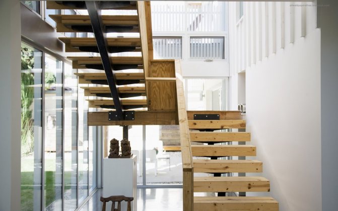 Лестница может быть изготовлена как из дерева, так и из металла. В любом случае её каркас имеет три варианта устройства:
