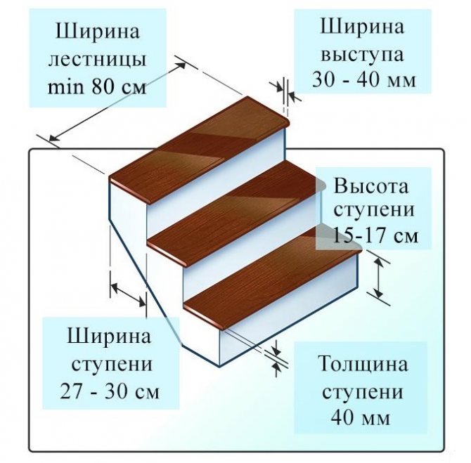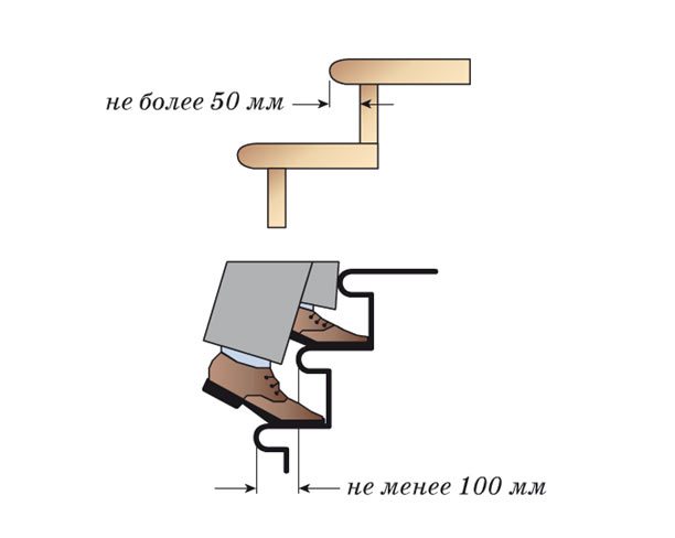 - Размер выступа ступеней.