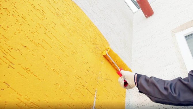 Готовое покрытие может быть окрашено в один или два цвета при помощи силикатной фасадной краски, наиболее подходящей по составу к материалу штукатурки.