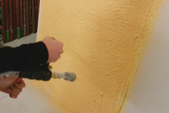 - покрытие имеет шероховатую структуру, поэтому визуально скрывает неровности стены;