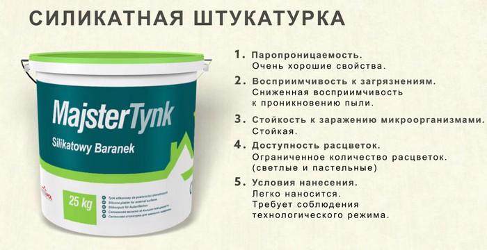 Как правило, силикатные штукатурки применяются для отделки фасада. Это в первую очередь обусловлено их свойствами: