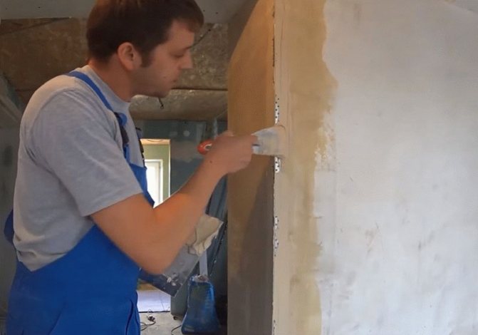 - когда раствор схватился, проводят черновую шпаклевку,