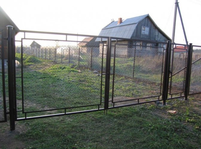 Если вы хотите сделать ворота своими руками, стоит выбирать именно третий вариант. Также вместо сетки можно использовать профнастил.