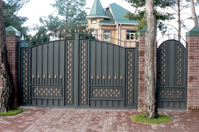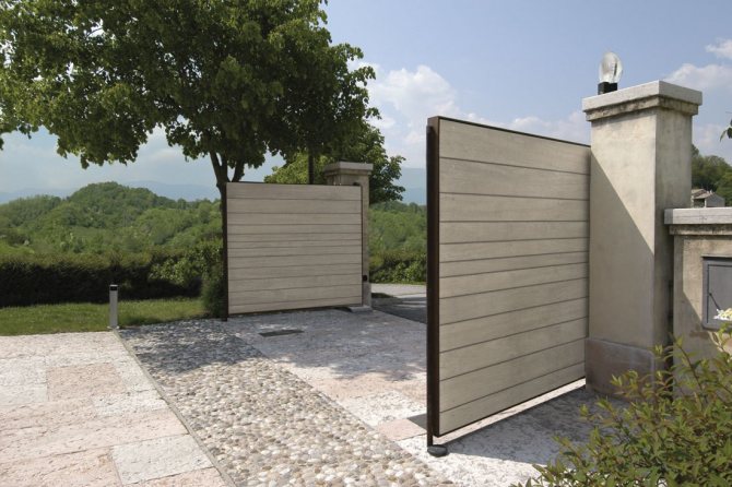 В реальности это довольно универсальное решение, в равной степени подходящее и для городского особняка, и для дачного участка. Поскольку они с помощью механизма (или просто руками) задвигаются параллельно ограде, им не требуется много места.