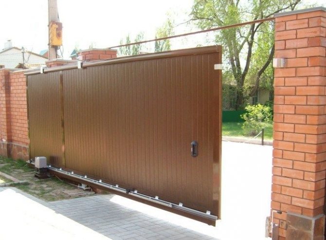 - Экономия пространства участка. Откатные конструкции занимают немного места, так как в открытом положении располагаются вдоль ограждения, что видно на фото.