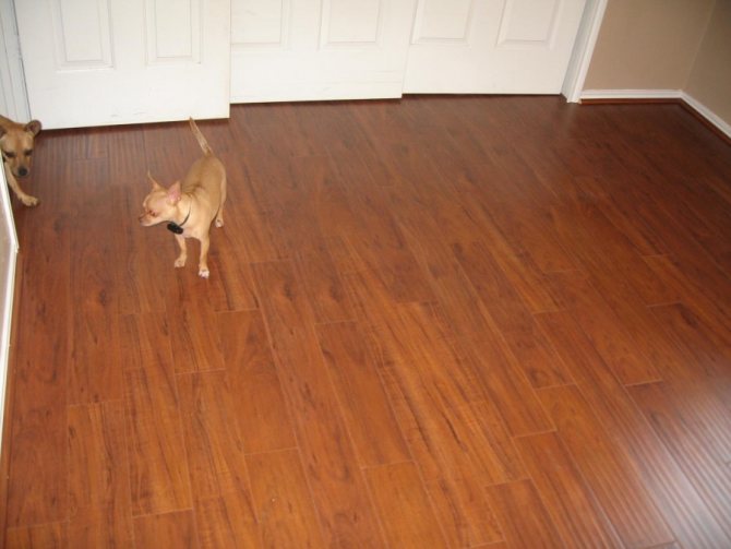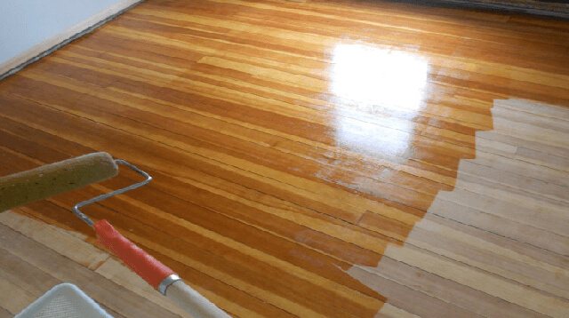 - Если дополнительно будет наноситься лак, то покрывать им пол нужно в несколько слоев. Каждый последующий накладывают поперек предыдущего. Между нанесением слоев должно пройти не меньше 2 суток.
