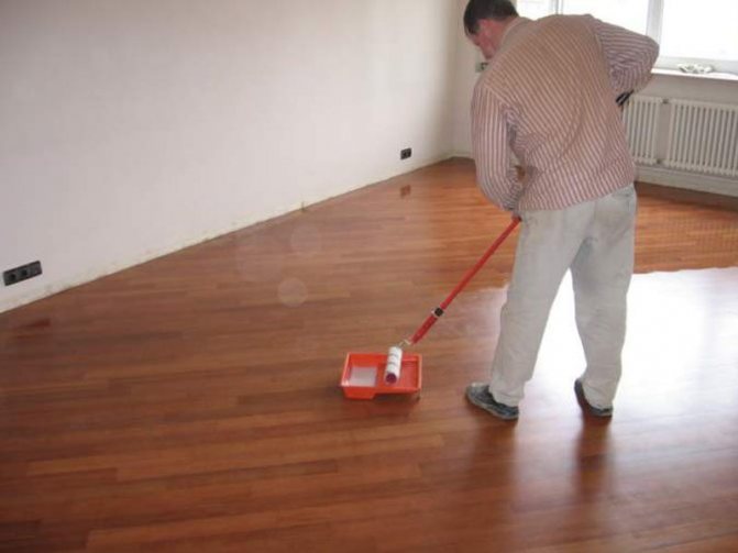 Финишная операция – покрытие паркета после циклевки. К этому времени настил необходимо тщательно пропылесосить.