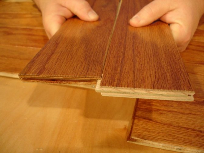Иногда причиной скрипа становится неправильная укладка. Исправить положение поможет стягивание плиток от краев к середине комнаты (сгонка). Эту процедуру можно выполнять только при невысокой влажности воздуха в помещении (до 40%). При влажности 50-60% сгонка возможна, но проводить ее нужно с большой осторожностью. Влажность более 60% делает ее невозможной.